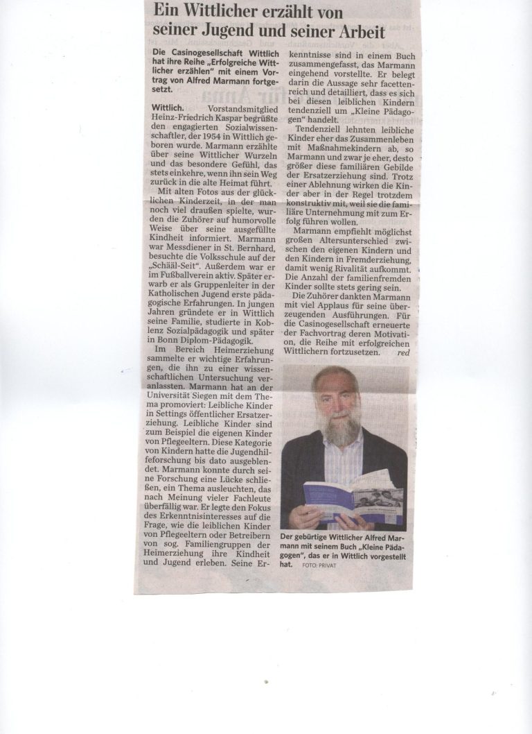 Die Casinogesellschaft lädt "Wittlicher Urgewächse" ein, die über sich und ihr Wirken berichten...