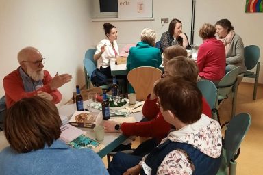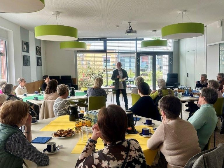 Dr. Alfred Marmann, ehemaliger Geschäftsführer der FWS gGmbH, las aus seinem aktuellen Roman „Brunos Pfade“. Rolf Stamm, Prokurist der FWS gGmbH, begrüßte die Gäste im liebevoll gestalteten Bistro der FWS gGmbH am Rheindörfer Platz 4 in St. Sebastian. Bei Kaffee und Gebäck lauschten die Damen anschließend dem Vortrag des Autoren, der seinen verdienten Ruhestand nutzt, um schriftstellerisch tätig zu sein.